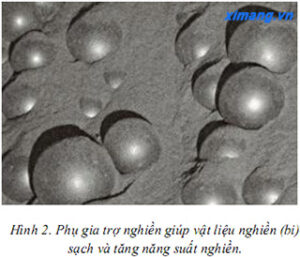 Các vật liệu nghiền (bi đạn, tấm lót) trong Hình 1, được phủ bởi các hạt xi măng, kết quả làm cho trạng thái của hệ có năng lượng tối thiểu không có chất trợ nghiền.