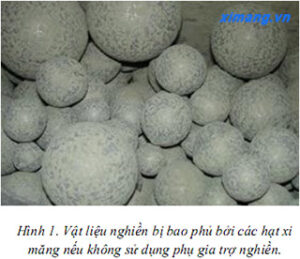 Các vật liệu nghiền (bi đạn, tấm lót) trong Hình 1, được phủ bởi các hạt xi măng, kết quả làm cho trạng thái của hệ có năng lượng tối thiểu không có chất trợ nghiền.